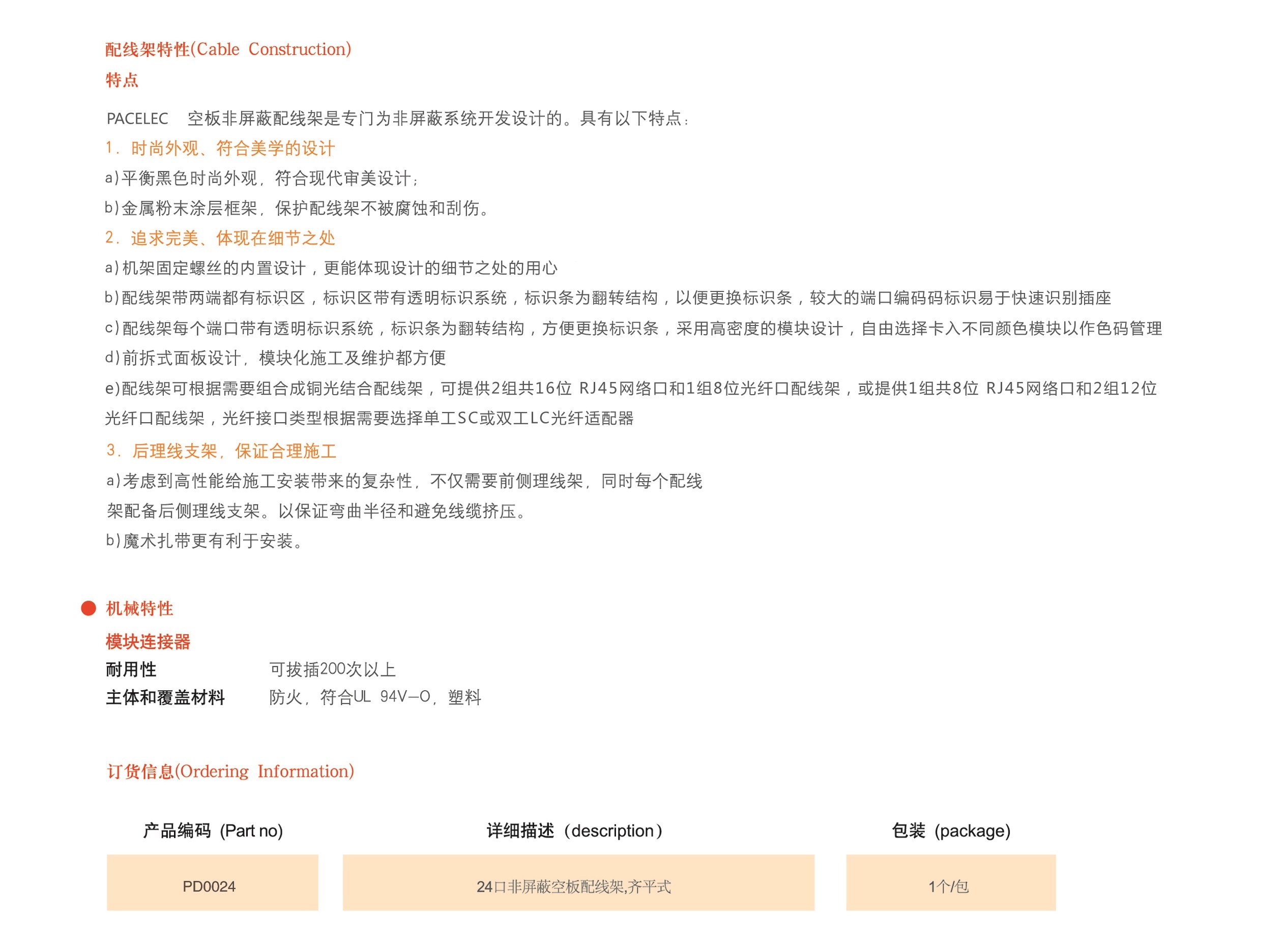 专门用于结构化综合布线的PACELEC非屏蔽局域网,有出色的高频特性,安装简便,模块式配线架可与所有CNET各种模块配套使用,可以安装到19'机柜内。