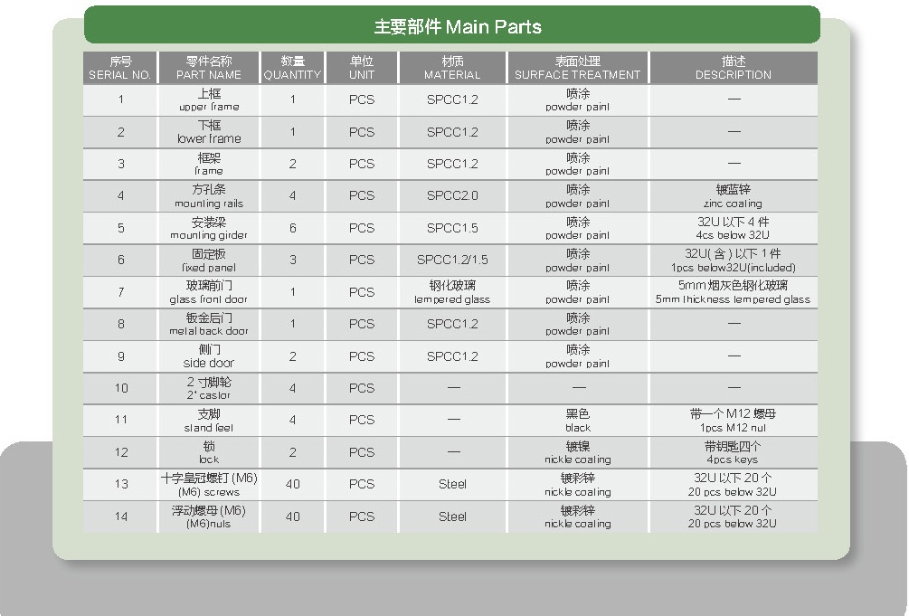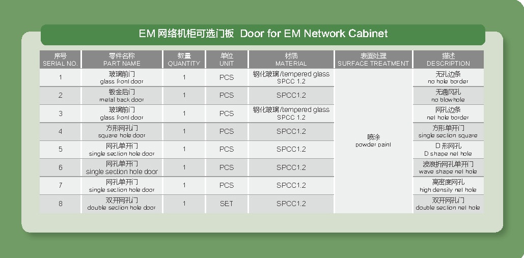 3. 上下部走线孔配有分组盖板;前后门及侧门容易拆装,方便工作,底部通风防鼠。