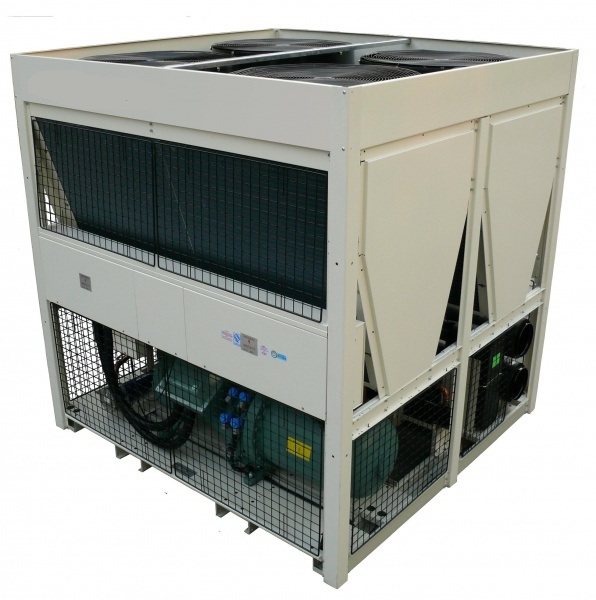 n 每个AMCH模块包括了两个涡旋式制冷压缩机、不锈钢钎焊板式蒸发器、高效翅片铜管式冷凝器、制冷膨胀阀、电磁阀等,它们构成了每个模块内两个独立和冗余的制冷回路